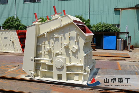 反擊式破碎機結構簡單、破碎比大,主要用于粉碎粒度在120-500 mm之間、抗壓強度不超過320pa的中硬、脆性物料。一般用作二級破碎。